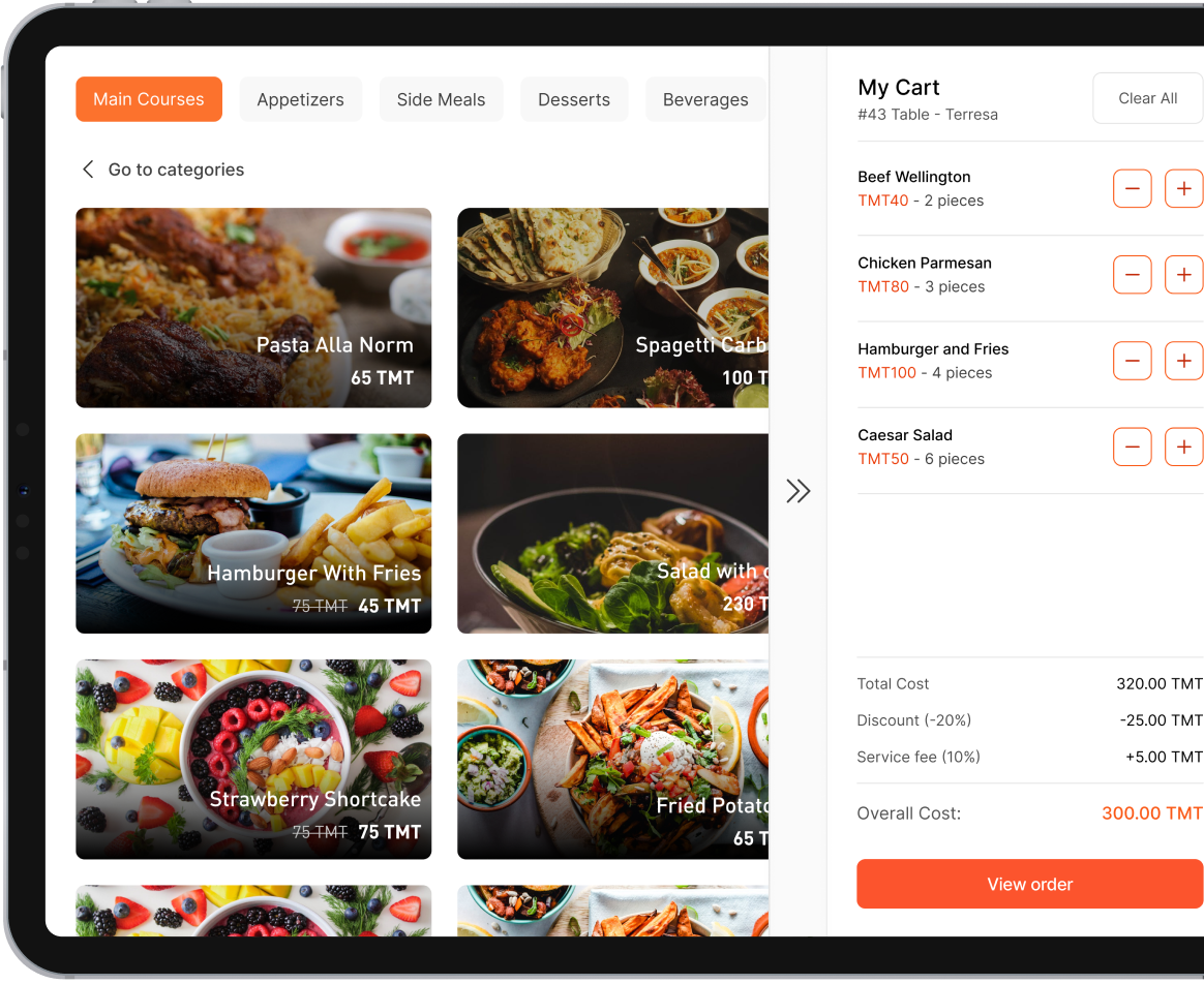 Empower your restaurant or hotel with our Tablet Menu app – manage orders seamlessly and enhance the dining experience. Choose between direct ordering or a visual menu for added flexibility, all customizable to your brand's identity.